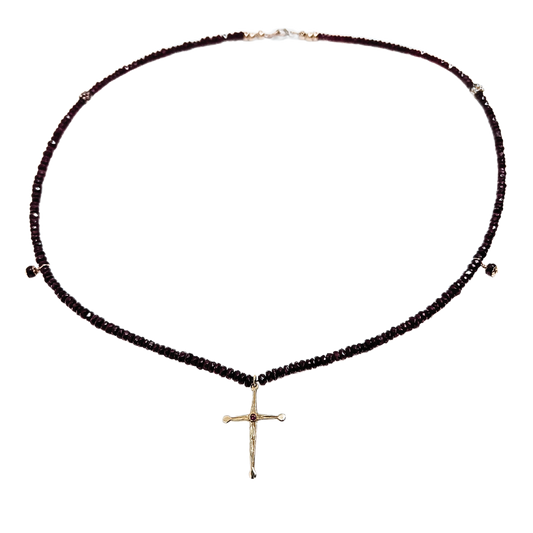 delicate ruby necklace with gold cross