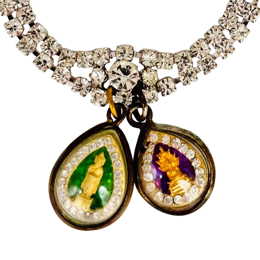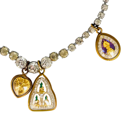 Vintage Diamanté Necklace with Three Buddha Talismans II
