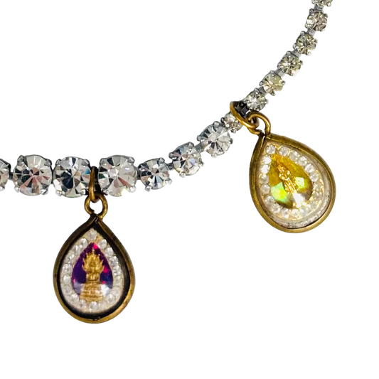 Vintage Diamanté Pear Drop Necklace with Four Buddha Talismans