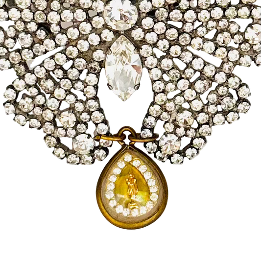 Antique Clear-Back Diamanté Necklace with Gold Buddha Talisman