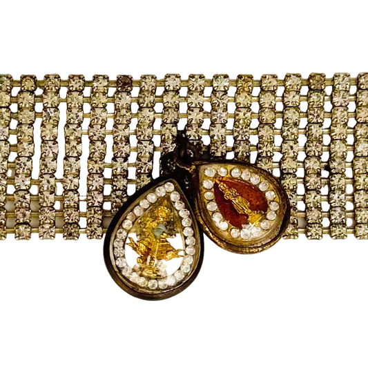 Vintage 1950s Diamanté Ten-Row Bracelet with Buddha Talismans