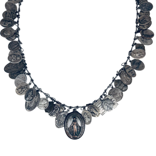Vintage Diamanté Cross-Detail Necklace with Five Buddha Talismans