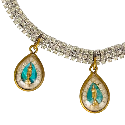 1960s Triple-Row Diamanté Necklace with Blue Buddha Talismans
