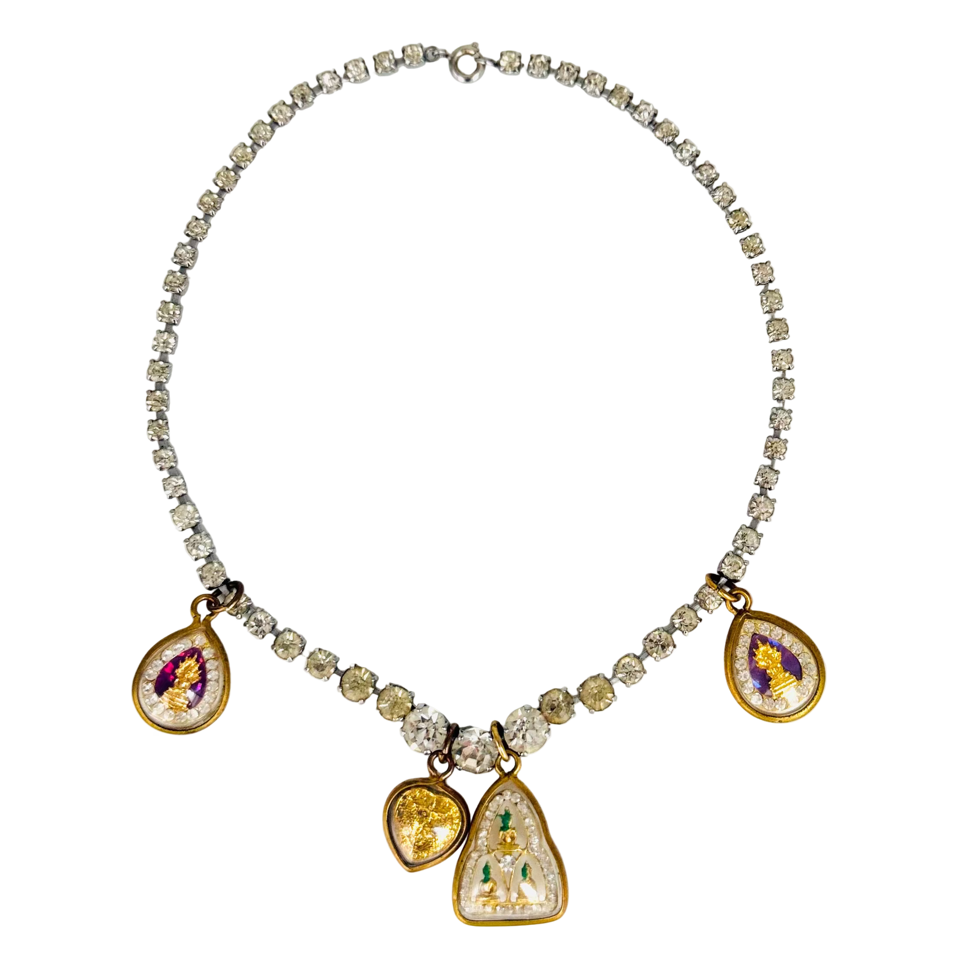 Vintage Diamanté necklace with Buddhas and Heart Talismans