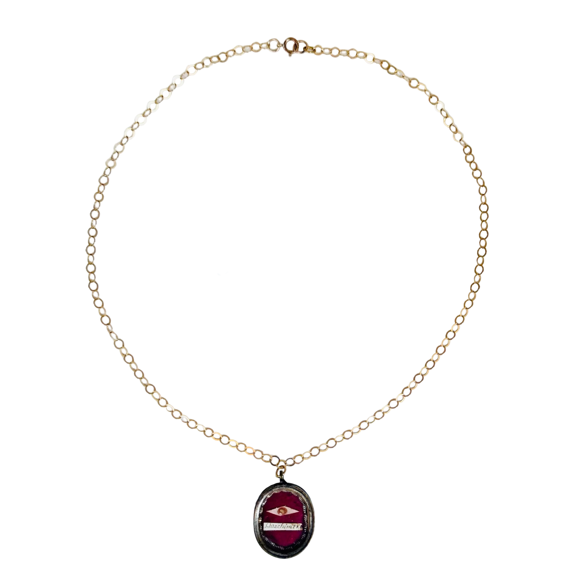 The back casing houses its original internal red-wax ecclesiastical seal securing the threads. The chain shown is modern and included for wear, but not original to the the reliquary.