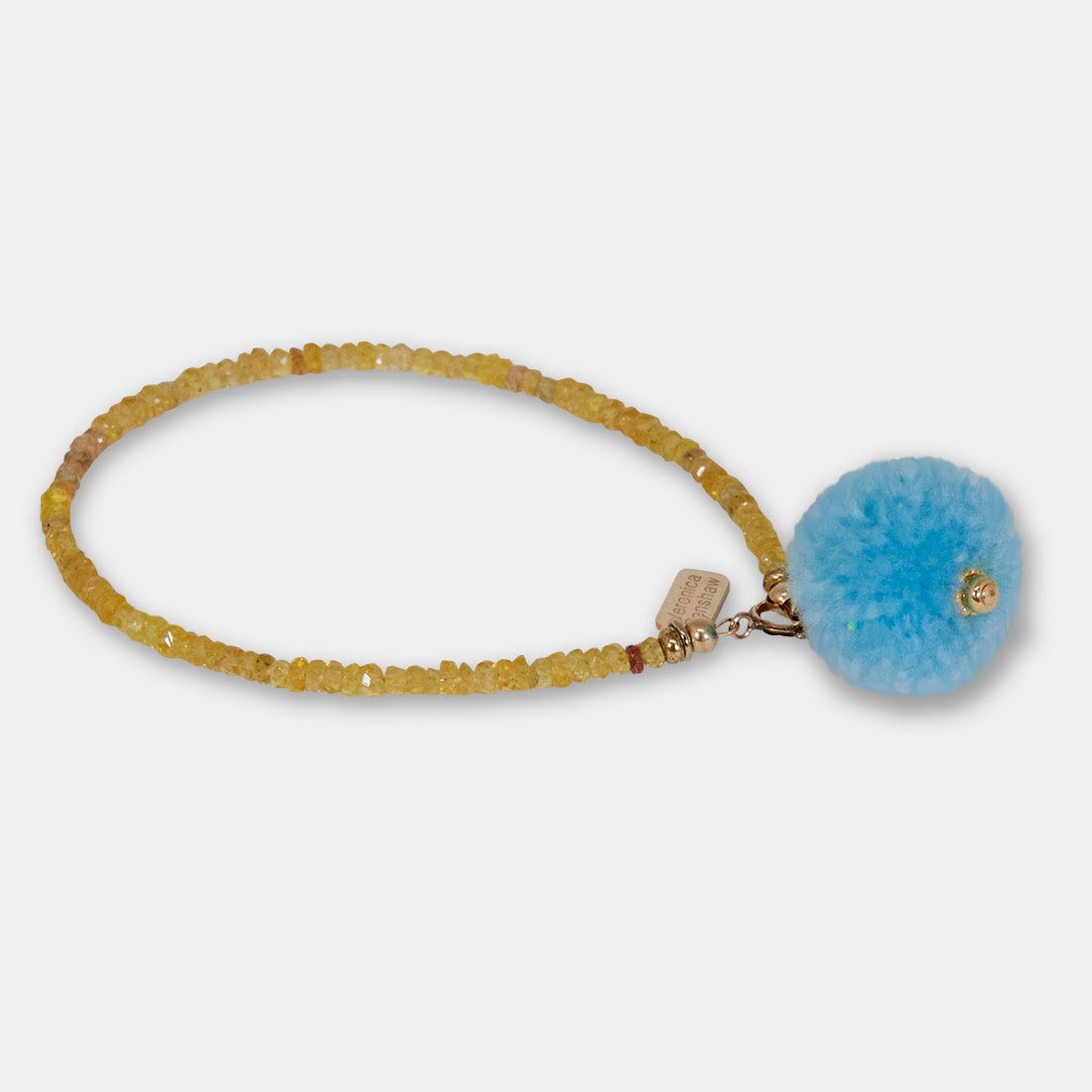 Delicate side pompom bracelet made with precious yellow sapphire stones, gold-filled findings 18.5 cm approx.