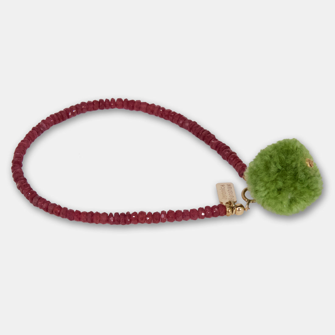 Delicate side pompom bracelet made with precious ruby stones, gold-filled findings 18.5 cm approx.