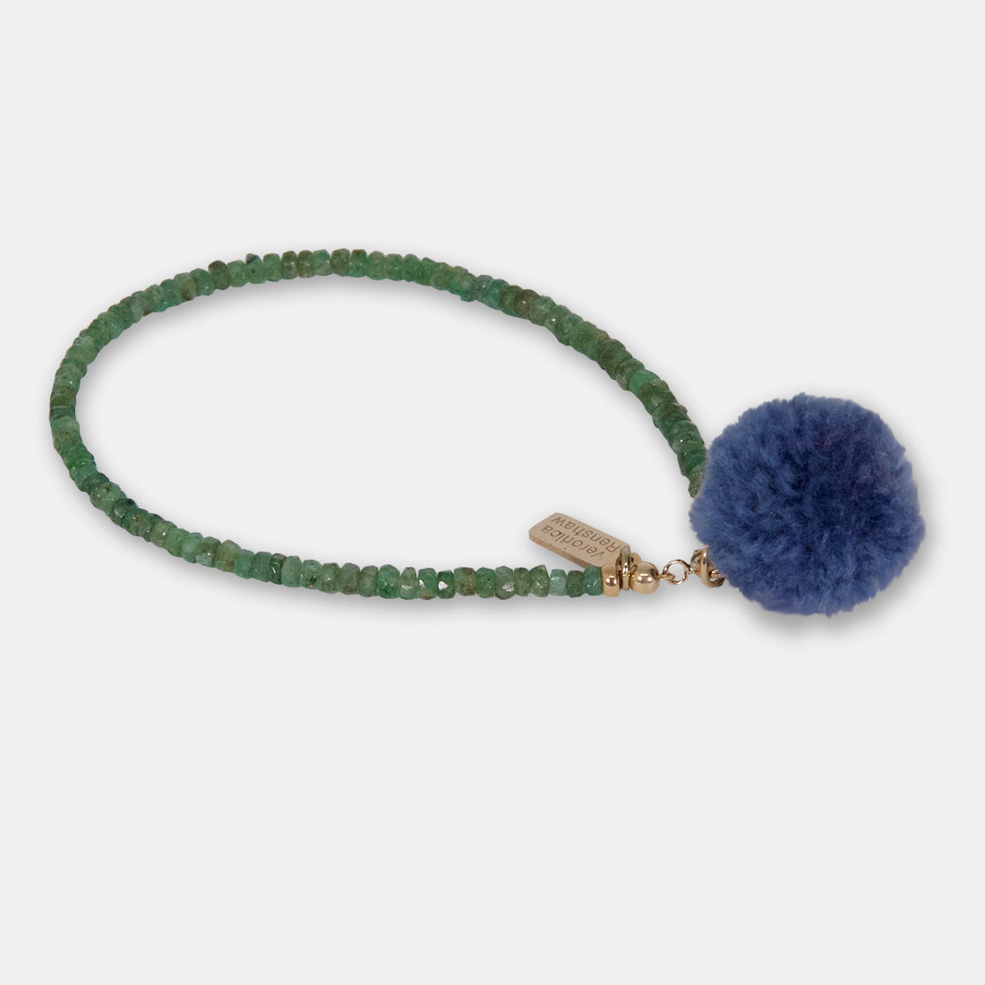 Delicate side pompom bracelet made with precious emerald stones, gold-filled findings 18.5 cm approx.