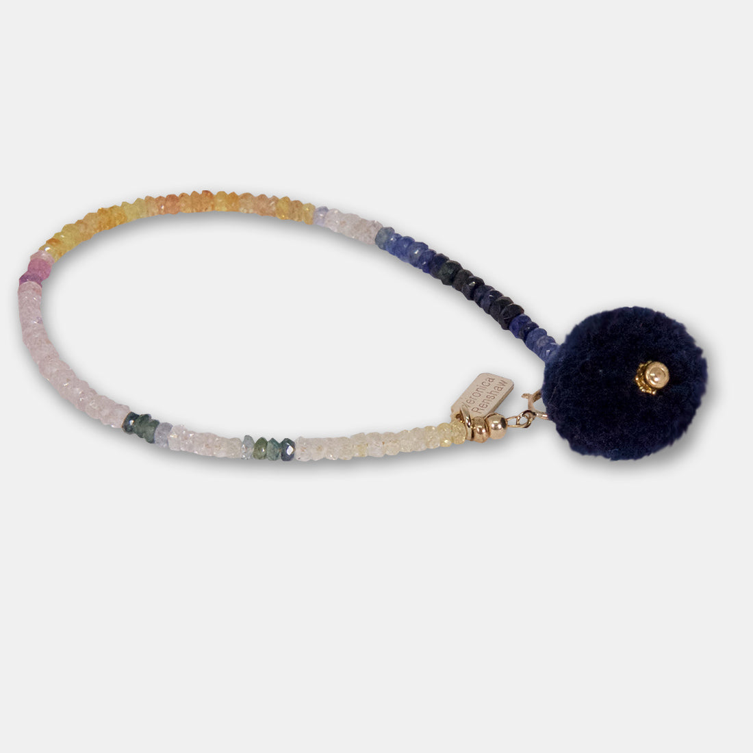 Delicate side pompom bracelet made with precious multicoloured stones, gold-filled findings 18.5 cm approx.
