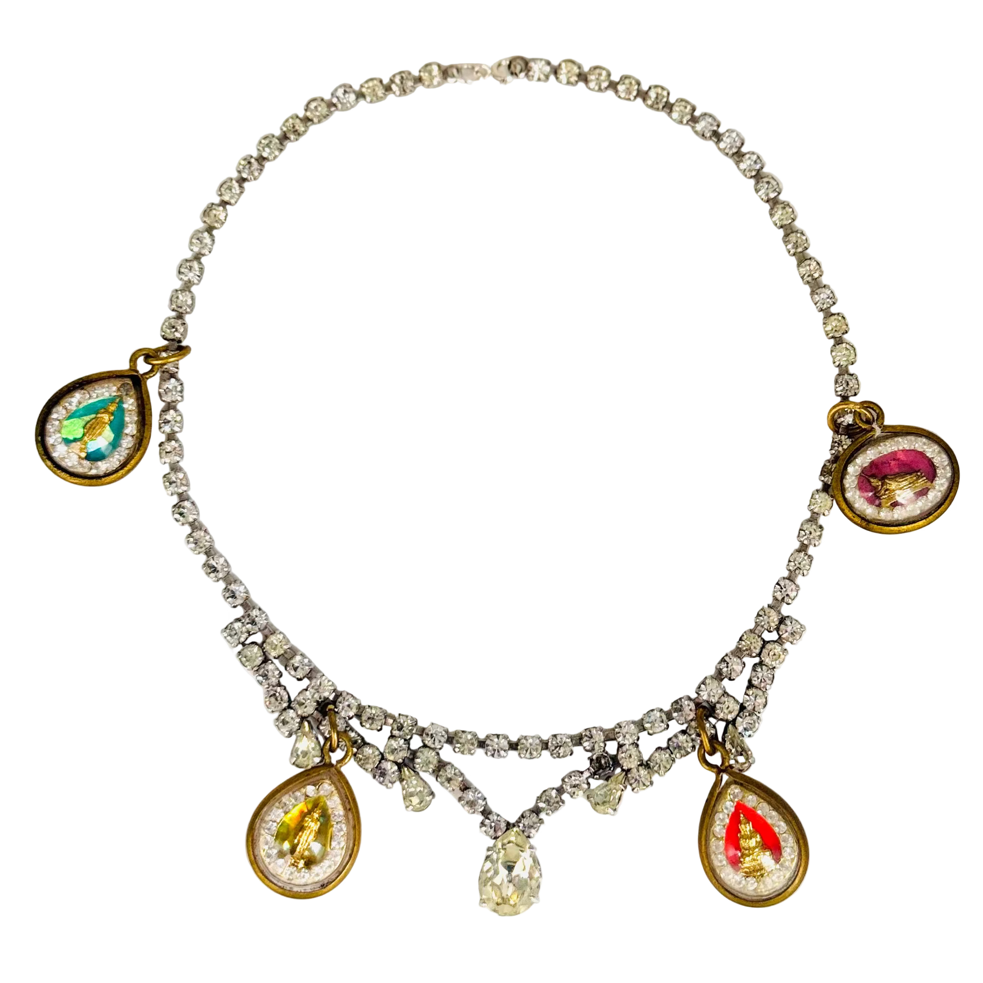 Vintage Diamanté Drop Necklace with Four Buddha Talismans