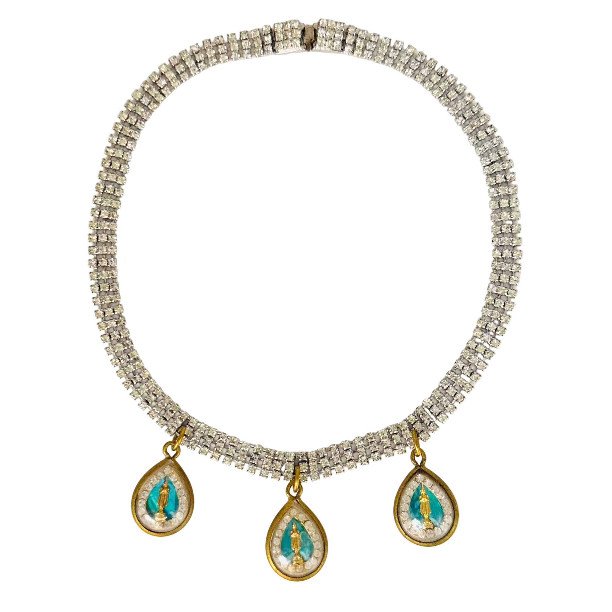 1960s Triple-Row Diamanté Necklace with Blue Buddha Talismans