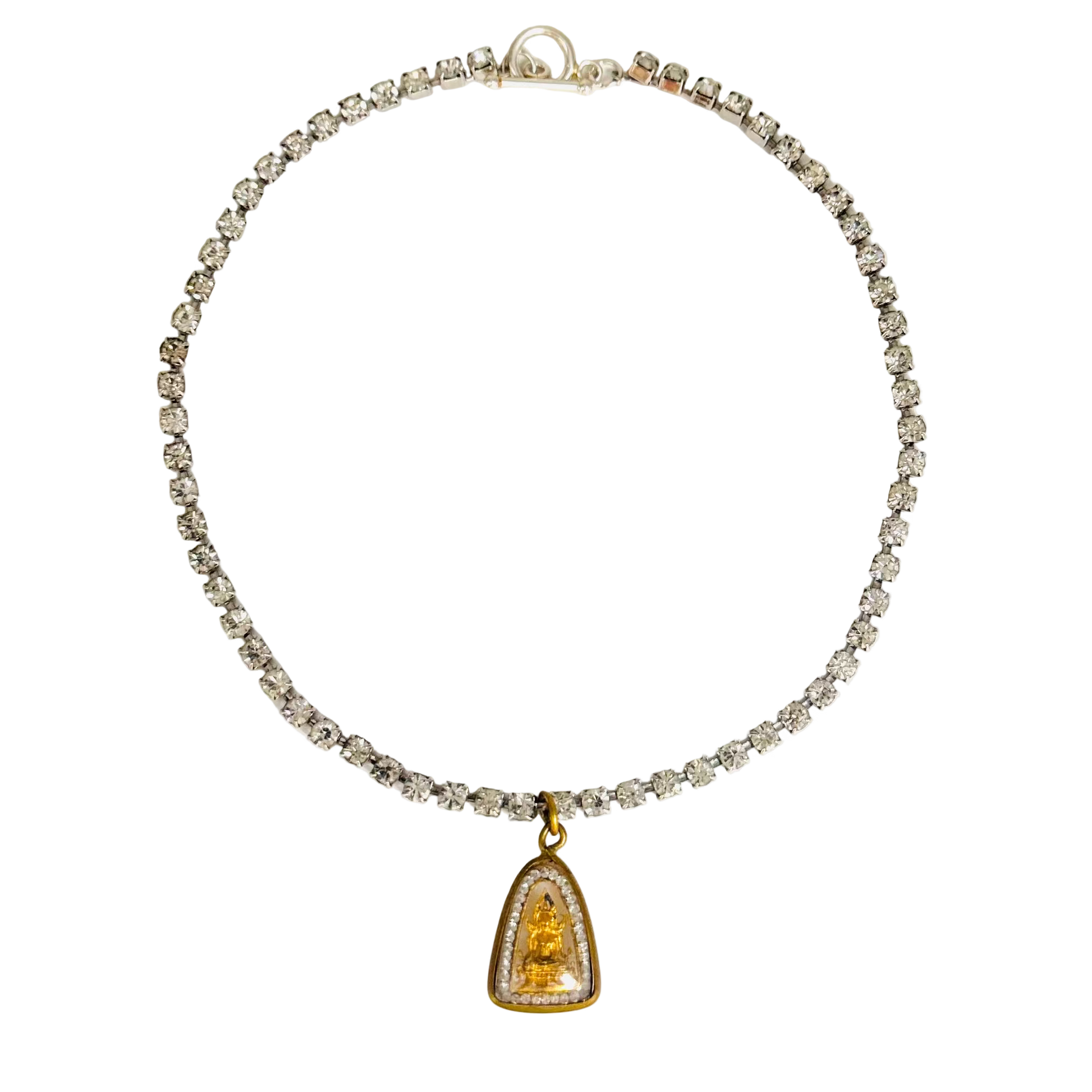 Vintage Diamanté Necklace with Single Buddha Talisman