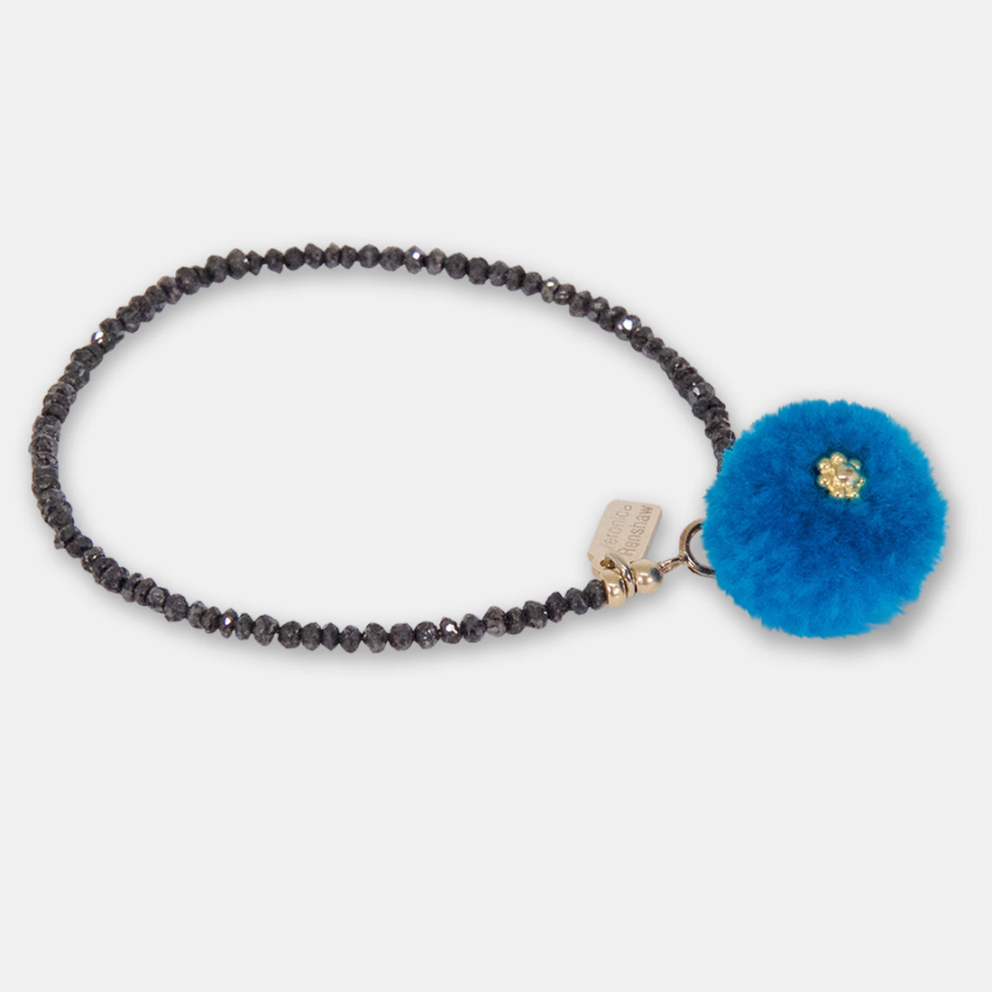 Uniquely Elegant side pompom bracelet made with black diamonds, gold-filled findings 18.5 cm approx.