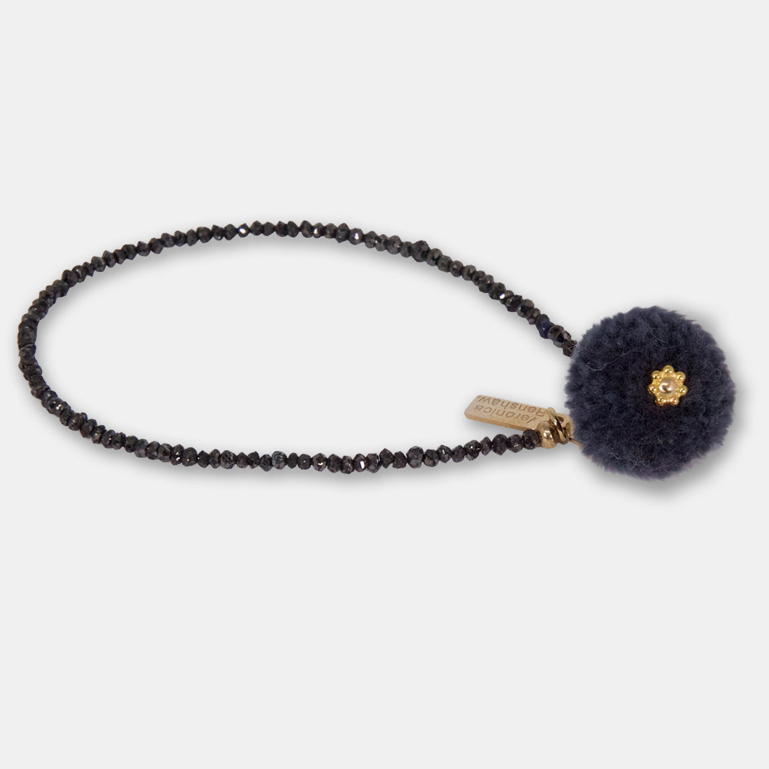 Uniquely Elegant side pompom bracelet made with black diamonds, gold-filled findings 18.5 cm approx.